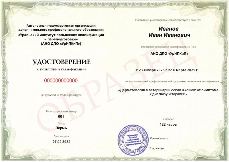 - Образец удостоверения о повышении квалификации.