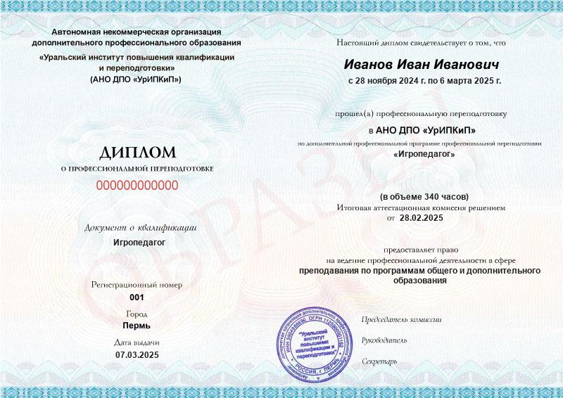 • Квалификация: Игропедагог