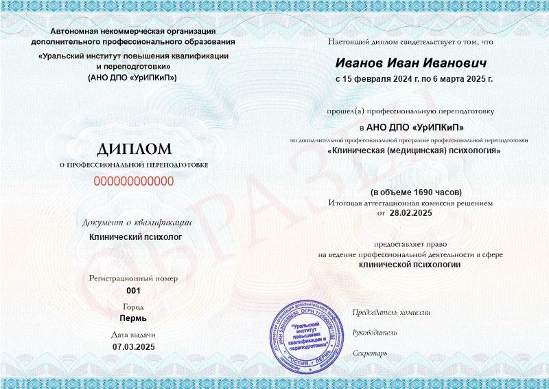 Курс обучения Клиническая (медицинская) психология (1690ч)