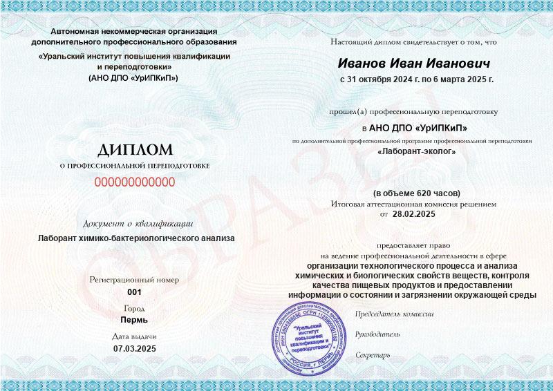 Курс обучения Лаборант-эколог (620ч)