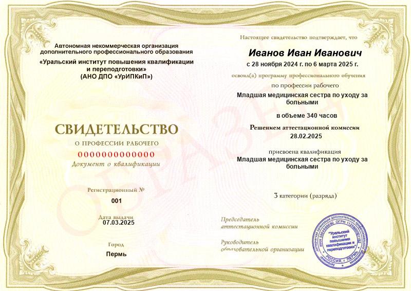Заполненные образцы выдаваемых документов есть в описании учебных курсов и на странице «Лицензия. Документы», а также на главной странице официального сайта АНО ДПО «УрИПКиП».