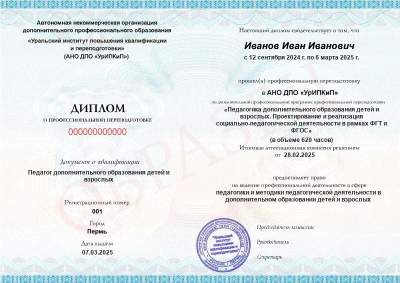 - Образец диплома о профессиональной переподготовке.