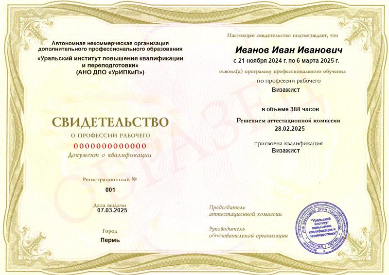 Заполненные образцы выдаваемых документов есть в описании учебных курсов и на странице «Лицензия. Документы», а также на главной странице официального сайта АНО ДПО «УрИПКиП».