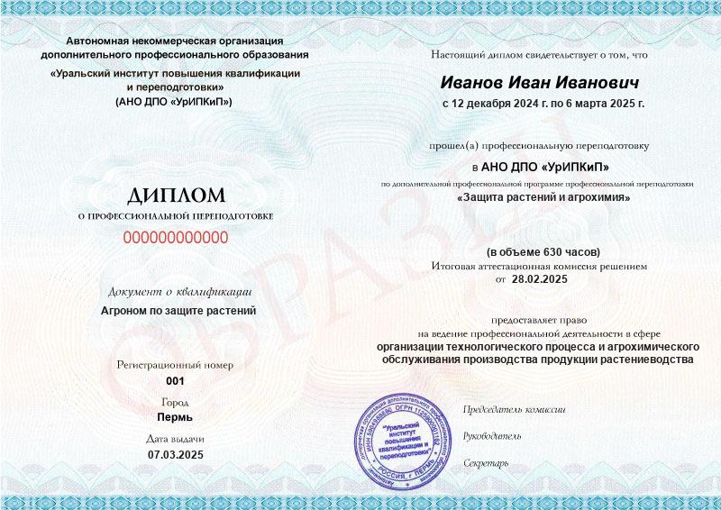 Курс обучения Защита растений и агрохимия (630ч)
